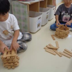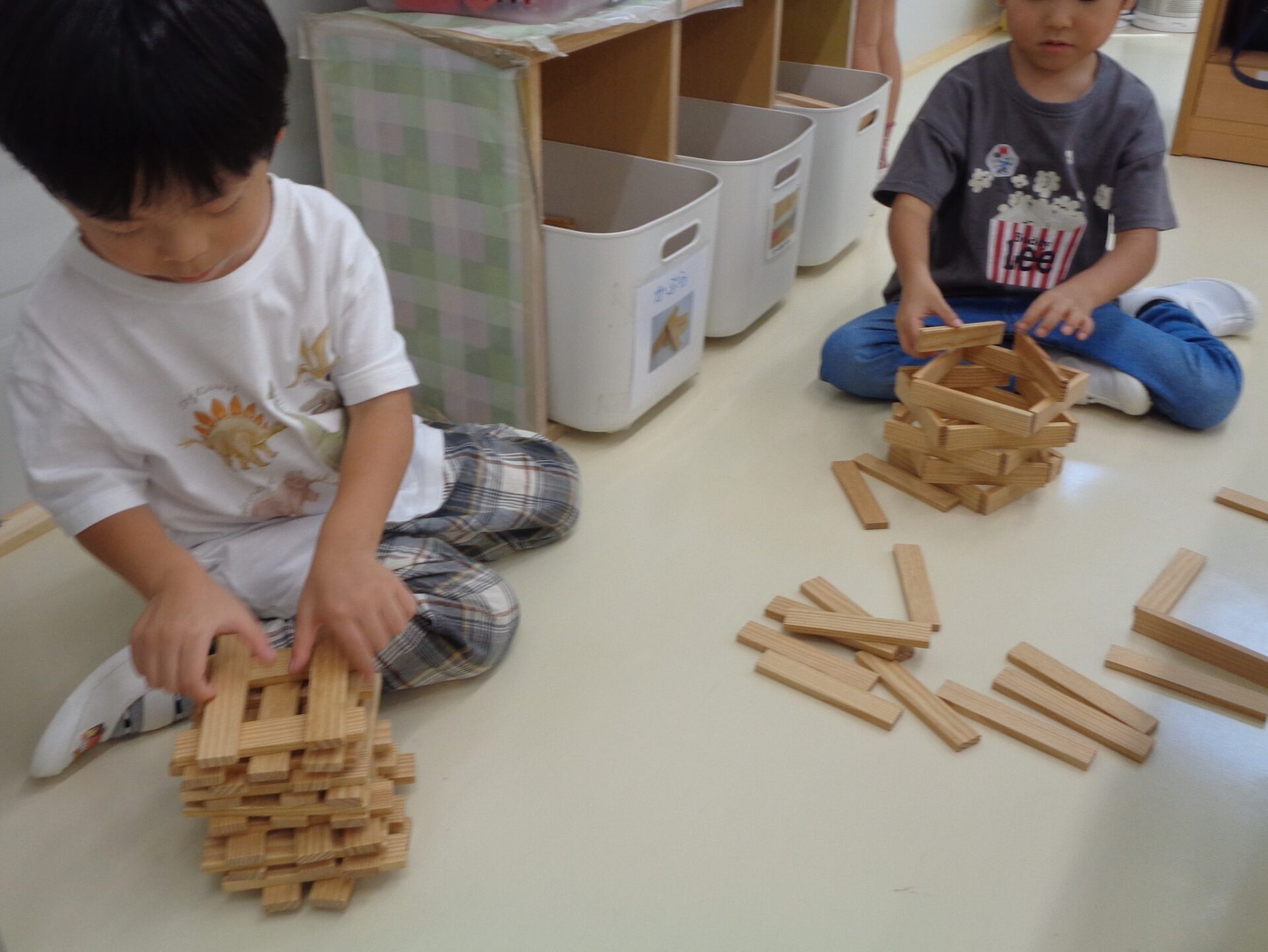 久しぶりの幼稚園。朝は少し緊張していたようですが、以前からしていた遊びを思い出して遊び始めると、ニコニコの子どもたちでした。楽しい2学期にしようね!