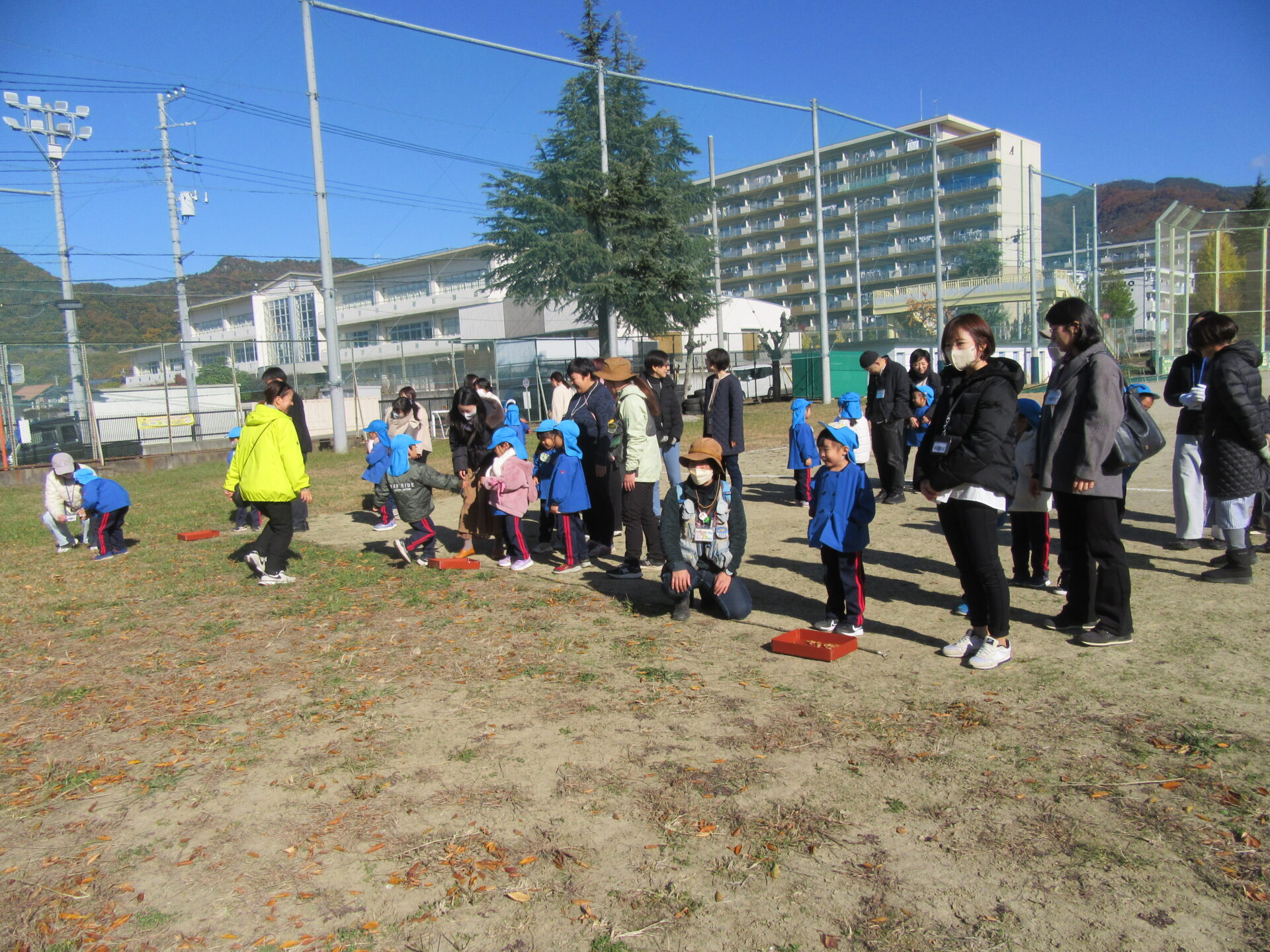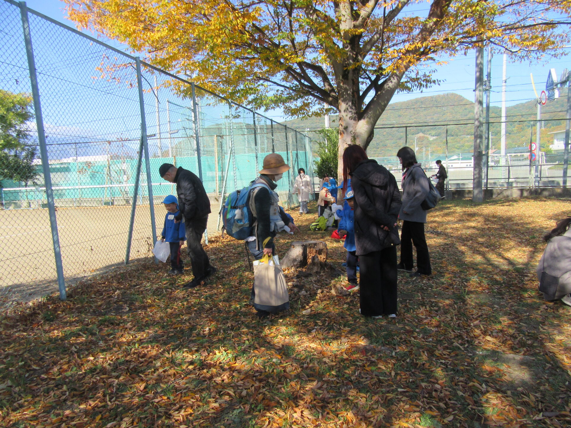 今年度は、幼稚園と中学校の校庭を使って、公益財団法人キープ協会のレンジャーさんと一緒に秋の自然に親しむ親子活動を行いました。